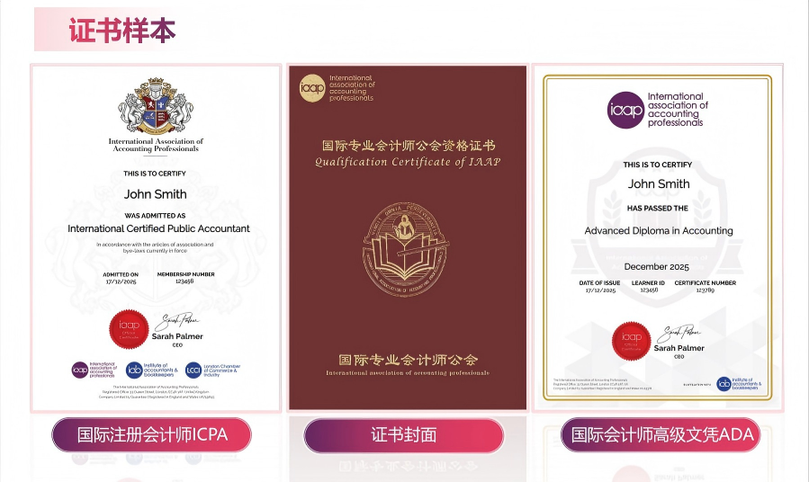 - 一试三证:一次考试=国际注册会计师证+ADA高级文凭+国内联合认证,含金量拉满!